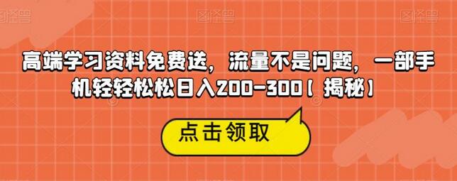 高端学习资料免费送,流量不是问题,一部手机轻轻松松日入200-300