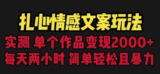 扎心情感文案玩法,单个作品变现5000+,一分钟一条原创作品,流量爆炸