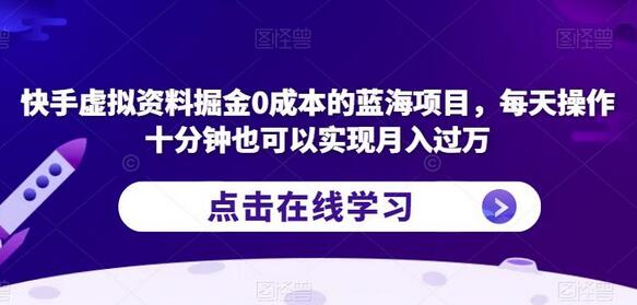 快手虚拟资料掘金0成本的蓝海项目,每天操作十分钟也可以实现月入过万