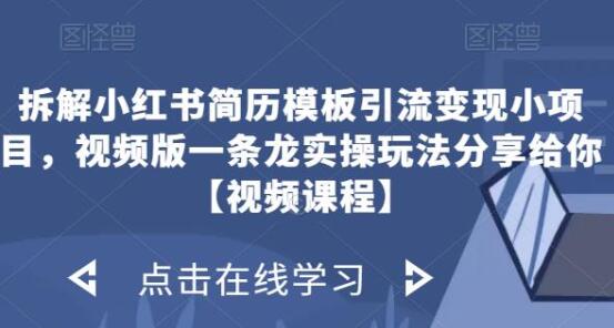拆解小红书简历模板引流变现小项目,视频版一条龙实操玩法分享给你【视频课程】