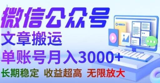 微信公众号搬运文章,单账号月收益3000+收益稳定,长期项目,无限放大