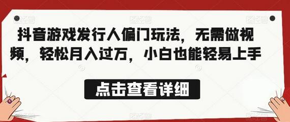 全网首发,抖音游戏发行人偏门玩法,无需做视频,轻松月入过万,小白也能轻易上手