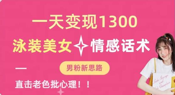 一天变现1300,泳装美女+情感话术,提供素材,无脑矩阵操作