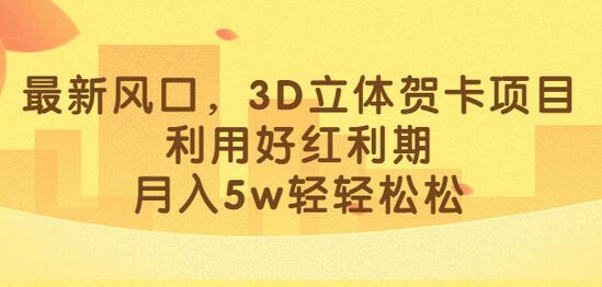 最新风口,3D立体贺卡项目,利用好红利期,月入5w轻轻松松