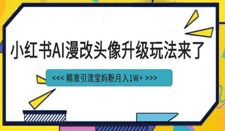 今天给大家带来的是《小红书AI漫改头像精准引流宝妈粉,单号月入1w+》这个项目,AI漫改头像低成本制作,普通小白可快速上手在小红书引流精准宝妈粉,通过客户提供真人照片,用软件改成漫画的图,一旦利润10-30元,可以放大矩阵化操作,同时也可以收徒,一般在199-1000不等