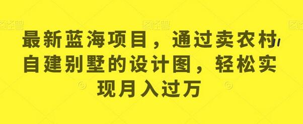 最新蓝海项目,通过卖农村自建别墅的设计图,轻松实现月入过万