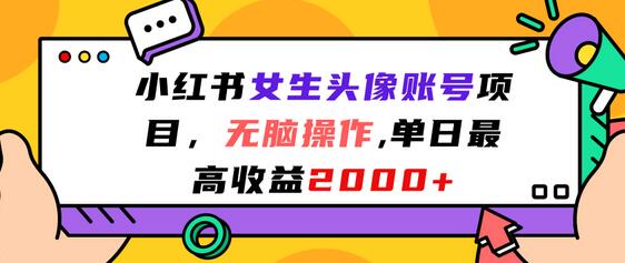 小红书女生头像账号项目,无脑操作“”单日最高收益2000+