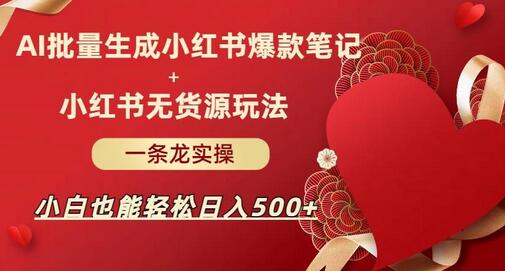 AI批量制造小红书爆款笔记+小红书无货源,玩法一条龙实操,小白也能轻松日入500+