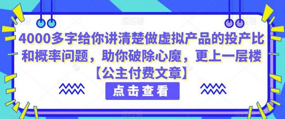 4000多字给你讲清楚做虚拟产品的投产比和概率问题,助你破除心魔,更上一层楼【公主付费文章】