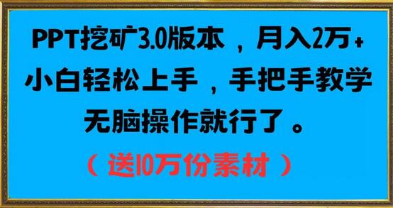 PPT挖矿3.0版本,月入2万小白轻松上手,手把手教学无脑操作就行了(送10万份素材)