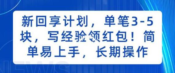 新回享计划,单笔3-5块,写经验领红包,简单易上手,长期操作