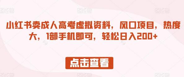 小红书卖成人高考虚拟资料,风口项目,热度大,1部手机即可,轻松日入200+