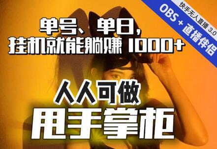 快手、抖音“无人直播”单号单日挂机就能躺赚1000+,这次我就把这当“甩手掌柜”的秘密教给你,人人可做!