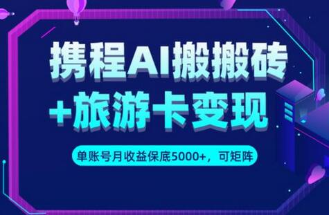 携程AI搬砖+旅游卡变现升级玩法,单号月收益保底5000+,可做矩阵号