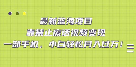最新蓝海项目,靠禁止废话视频变现,一部手机,小白轻松月入过万