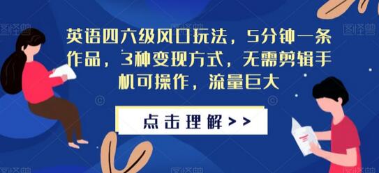 英语四六级风口玩法,5分钟一条作品,3种变现方式,无需剪辑手机可操作,流量巨大