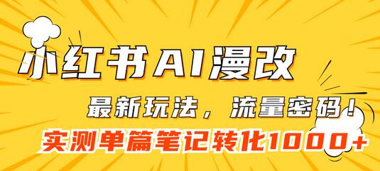 今天给大家带来的是《小红书AI漫改,流量密码一篇笔记变现1000+》这个项目,AI漫改无成本制作,相比之前的AI头像项目受众人群更广,小白可快速上手在小红书精准引流,一单利润9.9-29.9元,10秒一张图,可以放大矩阵化操作,同时也可以收徒。