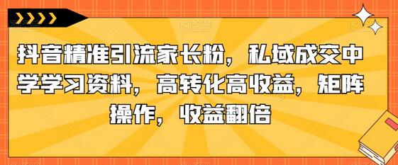 抖音精准引流家长粉,私域成交中学学习资料,高转化高收益,矩阵操作,收益翻倍