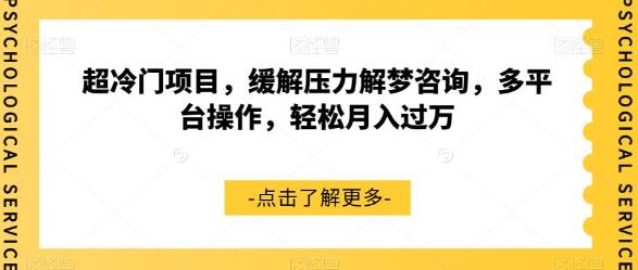 超冷门项目,缓解压力解梦咨询,多平台操作,轻松月入过万
