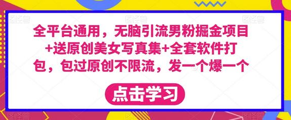 全平台通用,无脑引流男粉掘金项目+送原创美女写真集+全套软件打包,包过原创不限流,发一个爆一个