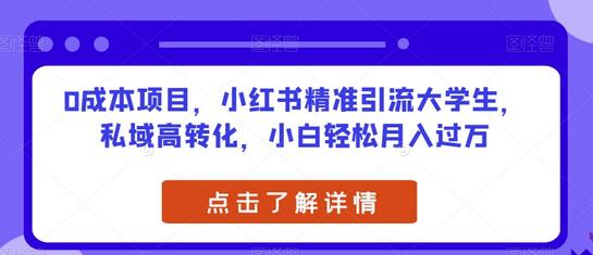 0成本项目,小红书精准引流大学生,私域高转化,小白轻松月入过万