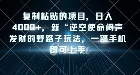 复制粘贴的项目,日入4000+,新“逆空使命“闷声发财的野路子玩法,一部手机即可上手