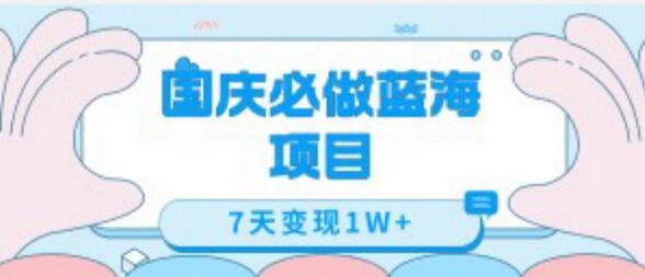 国庆必做蓝海项目7天变现1W+,无需投入任何资金