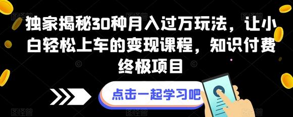 独家揭秘30种月入过万玩法,让小白轻松上车的变现课程,知识付费终极项目