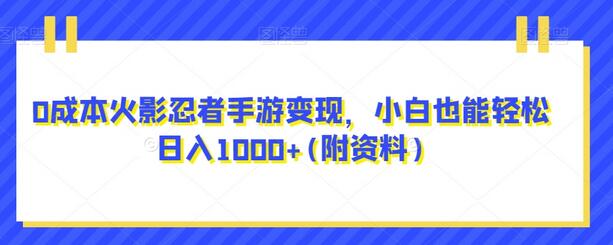 0成本火影忍者手游变现,小白也能轻松日入1000+(附资料)