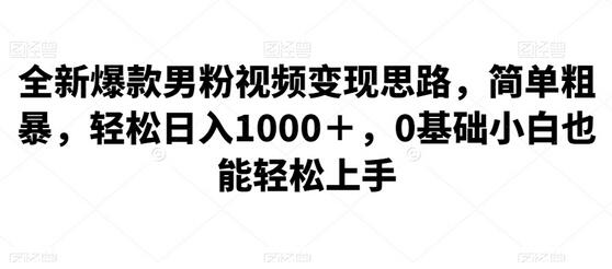 全新爆款男粉视频变现思路,简单粗暴,轻松日入1000+,0基础小白也能轻松上手