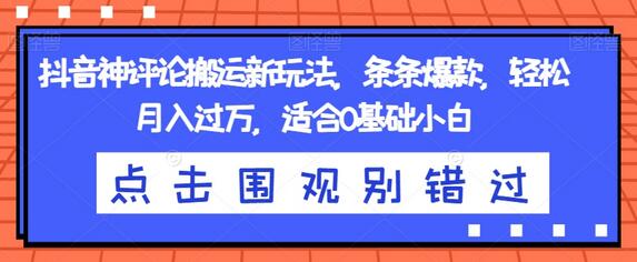 抖音神评论搬运新玩法,条条爆款,轻松月入过万,适合0基础小白
