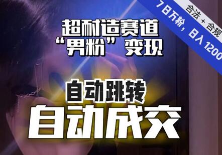 【超耐造赛道】7日实打实万粉,日入1200+,自动跳转,自动交付,男粉变现,YYDS!