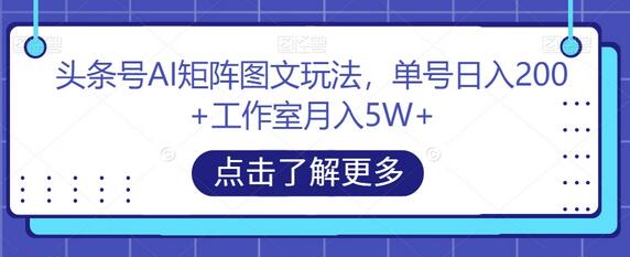 头条号AI矩阵图文玩法,单号日入200+工作室月入5W+