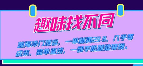 蓝海冷门项目,趣味找不同,一单利润29.8,几乎零成本,一部手机就能变现