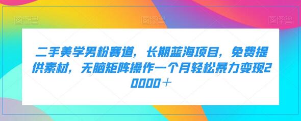 二手美学男粉赛道,长期蓝海项目,无脑矩阵操作一个月轻松暴力变现20000+