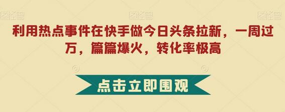 利用热点事件在快手做今日头条拉新,一周过万,篇篇爆火,转化率极高