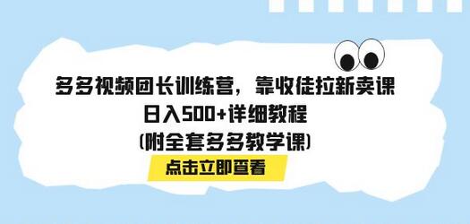 多多视频团长训练营,靠收徒拉新卖课,日入500+详细教程(附全套多多教学课)