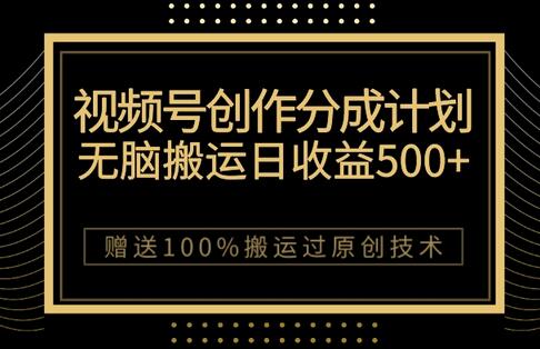 最新视频号创作分成计划,无脑搬运一天收益500+,100%搬运过原创技巧