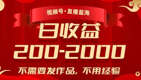 视频号直播蓝海,不需要发作品,不用经验,日入200-2000+