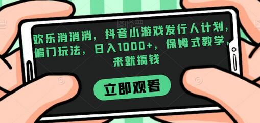 今天给大家带来的项目是《欢乐消消消,抖音小游戏发行人计划,偏门玩法,日入1000+,保姆式教学,来就搞钱》