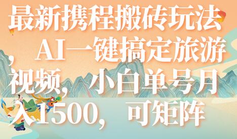 最新携程搬砖玩法,AI一键搞定旅游视频,小白单号月入1500,可矩阵