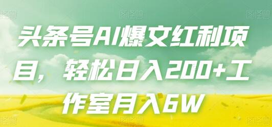 头条号AI爆文红利项目,轻松日入200+工作室月入6W