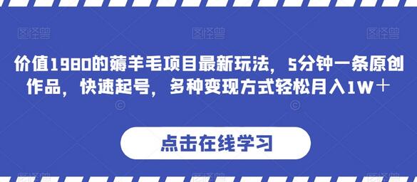 价值1980的薅羊毛项目最新玩法,5分钟一条原创作品,快速起号,多种变现方式轻松月入1W+