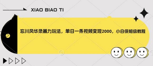 今天给大家带来的是我最近在做的忘川风华录暴力玩法,不需要有播放量,单日一条视频变现2000+,而且也不需要太多时间去制作作品,熟练以后几分钟就搞定,轻松过原创。此项目合法合规,大佬级别的玩法,月入过万不是梦。