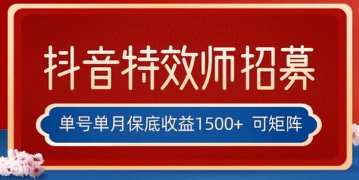 全网首发抖音特效师最新玩法,单号保底收益1500+,可多账号操作,每天操作十分钟