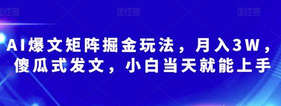 AI爆文矩阵掘金玩法,月入3W,傻瓜式发文,小白当天就能上手