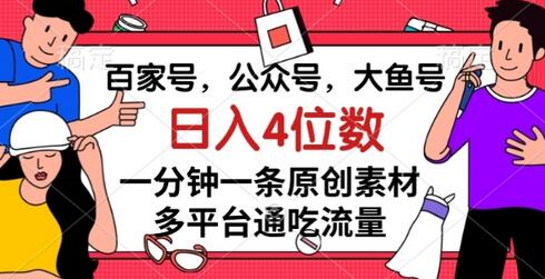 百家号,公众号,大鱼号一分钟一条原创素材,多平台通吃流量,日入4位数