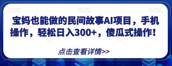 宝妈也能做的民间故事AI项目,手机操作,轻松日入300+,傻瓜式操作!