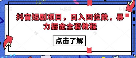 抖音短剧项目,日入四位数,暴力掘金全套教程
