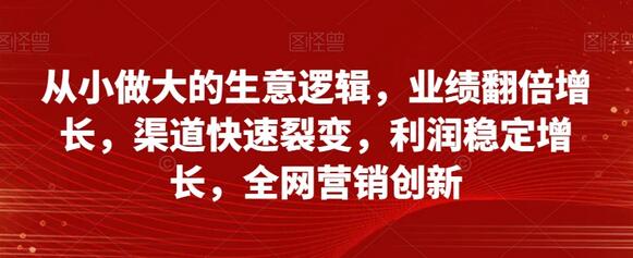 从小做大的生意逻辑,业绩翻倍增长,渠道快速裂变,利润稳定增长,全网营销创新